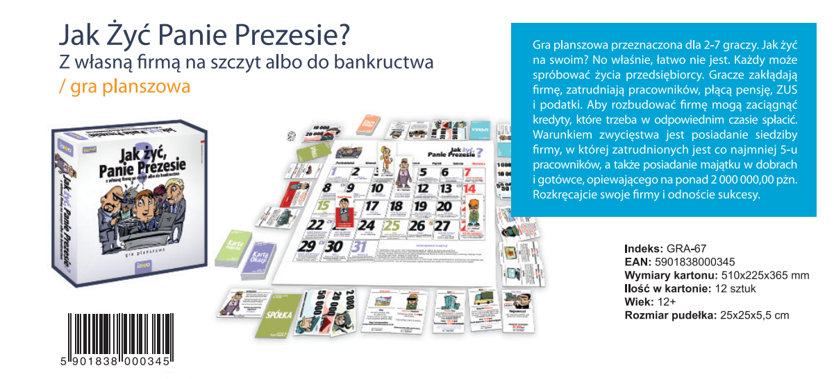 - nasza domowa gra planszowa “JAK ŻYĆ PANIE PREZESIE?” o tematyce finansowej utrwalająca wiedzę pozyskaną podczas szkolenia,